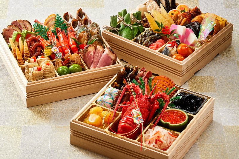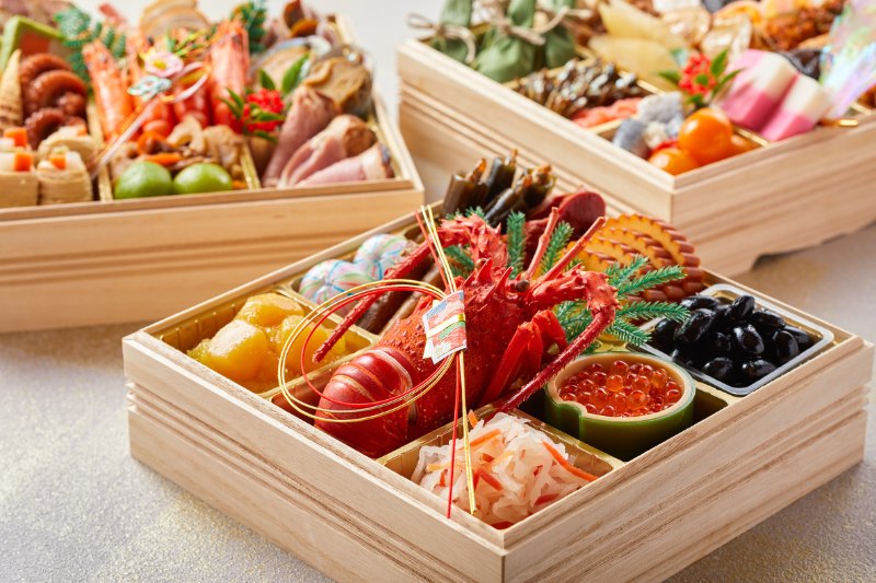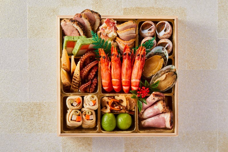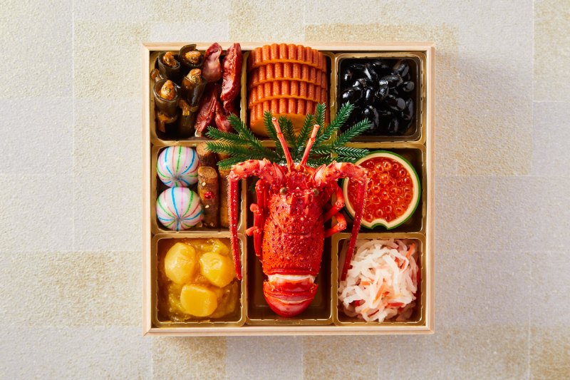 壱ノ重 | 紅白なます、いくらと北欧サラダ、伊勢海老、金団・栗甘露、たたき牛蒡、手毬餅、北海道産黒豆、伊達巻き、砂肝燻製、子持ちわかさぎ 昆布巻き 計10品 |