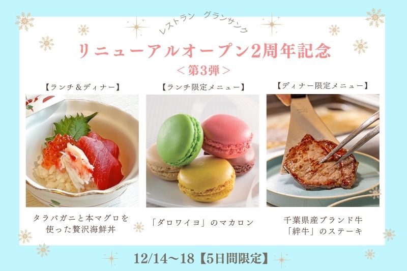 【第3弾開催!】「レストラン グランサンク」は、リニューアルオープンからおかげさまで2周年を迎えました。
