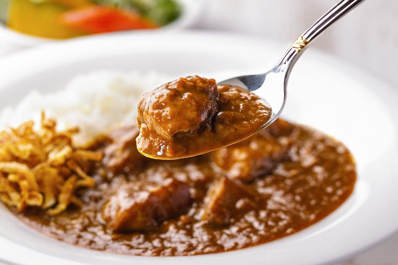 厳選したホテルオリジナルブレンドのスパイスを加えることで、独特な香りと風味を引き出しています。 カレーに奥深いコクを与える隠し味にはアップルプレザーブを使用。 玉ねぎの甘味の後にアップルプレザーブのほのかな酸味が鼻をかすめ、最後にスパイシーな辛みも感じる、唯一無二のカレーです。
