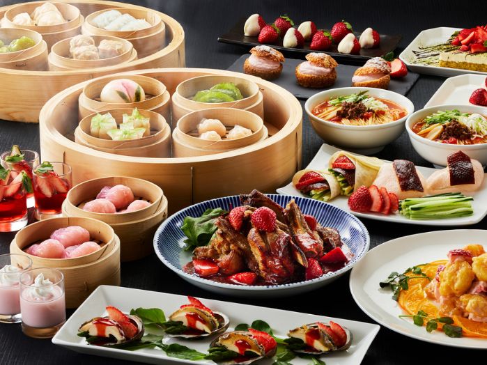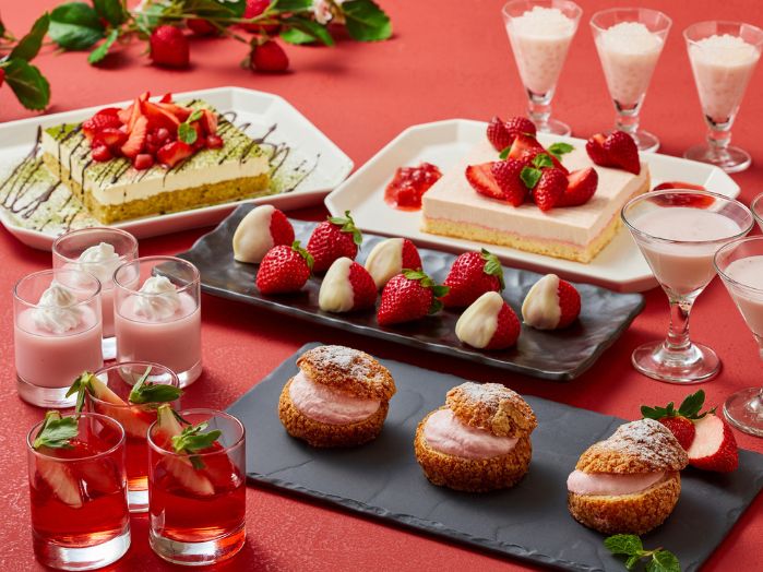 さわやかないちごソースが肉の旨みを引き立てるスペアリブや、いちご香るエビマヨ、いちごスイーツなど季節感あふれるメニューが登場します。