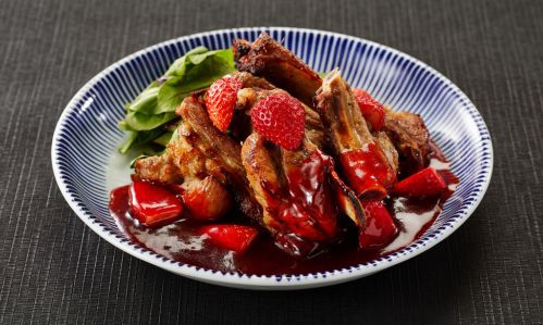 さわやかないちごソースが肉の旨みを引き立てるスペアリブや、いちご香るエビマヨ、いちごスイーツなど季節感あふれるメニューが登場します。