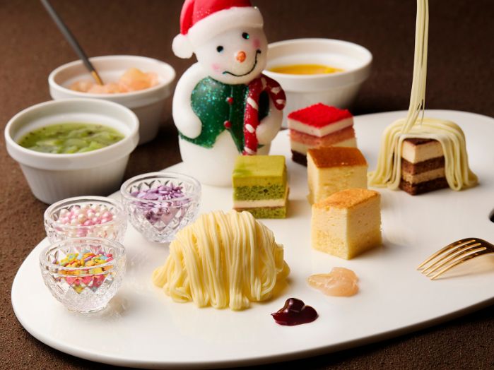 | 主なブッフェメニュー | <ランチブッフェ> 【フェアメニュー】 ハーブローストチキン ハニーマスタードソース 薬膳豆乳ポトフ カニとロブスターのクリームコロッケ デュカ香るポテトとゴルゴンゾーラチーズのグラタン ラクレット入りチーズフォンデュソース (プレッツェル、バケット、温野菜) 国産フレッシュポークトルネードソーセージとジャーマンポテト(土日祝限定) ポークスペアリブ 蝦夷鹿のテリーヌ ハーブマスタードとリンゴゼリー グルマンディーズサラダ ごまの香りのハーブ トリュフドレッシング スモークサーモン バケットサンド 本日のパスタ 神戸ハイカレー 【実演コーナー】 サーロインステーキ 赤ワインビネガーとドライトマトのソース~シャリアピン風~ 日替わり天婦羅4種 ※土日祝5種 握り寿司4種 ※土日祝5種 【和食】 日替わり天婦羅 4種 ※土日祝5種 握り寿司4種 ※土日祝5種 本日の味噌汁 信州蕎麦 【キッズメニュー】 フライドポテト 唐揚げ オムライス 【デザート】 チーズモンブラン ピスタチオケーキ ラズベリーケーキ スフレチーズ ティラミス フレッシュフルーツ ドーナッツウォール ★~12/25まで★ グリューワインゼリー スパイスバニラクリーム チョコレートフォンデュ アールグレイショコラ ショコラブランピスターシュ シュトーレン ジンジャークッキー ココカラメルプリン ブッシュドノエル(12/24、12/25限定) ★12/26~★ グリューワインゼリー スパイスバニラクリーム チョコレートフォンデュ アールグレイショコラ ショコラブランピスターシュ マロンモンブラン マスカットとメロンのショートケーキ こんにゃくもち ガレット・デ・ロワ(1/1~1/3限定) その他 サラダ・デザート・パン各種 ※メニューは、食材の入荷状況により一部変更となる場合がございます。 |
