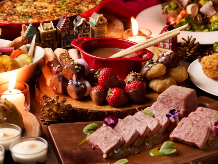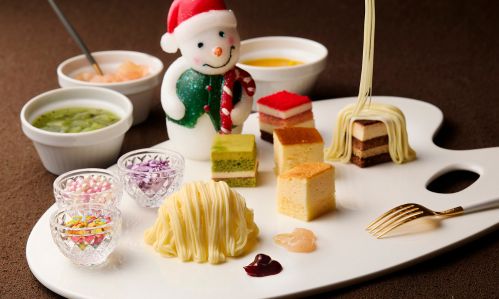 | 主なブッフェメニュー | <イヤーエンドランチブッフェ> 【実演コーナー】 サーロインステーキ 赤ワインビネガーとドライトマトのソース~シャリアピン風~ 日替わり天婦羅5種(湯葉巻き 大海老天ぷら含む) 握り寿司5種 【フェアメニュー】 和牛ビーフシチュー 薬膳豆乳ポトフ カニとロブスターのクリームコロッケ デュカ香るポテトとゴルゴンゾーラチーズのグラタン ラクレット入りチーズフォンデュソース (プレッツェル、バケット、温野菜) 国産フレッシュポークトルネードソーセージとジャーマンポテト ポークスペアリブ 蝦夷鹿のテリーヌ ハーブマスタードとリンゴゼリー グルマンディーズサラダ ごまの香りのハーブ トリュフドレッシング スモークサーモン バケットサンド 本日のパスタ 神戸ハイカレー かも南蛮そば(12/26~12/31限定メニュー) 【和食】 日替わり天婦羅5種(湯葉巻き 大海老天ぷら含む) 握り寿司5種 本日の味噌汁 信州蕎麦 【キッズメニュー】 フライドポテト 唐揚げ オムライス 【デザート】 チョコレートフォンデュ グリューワインゼリー スパイスバニラクリーム アールグレイショコラ ショコラブランピスターシュ マロンモンブラン マスカットとメロンのショートケーキ チーズモンブラン ピスタチオケーキ ラズベリーケーキ スフレチーズ ティラミス フレッシュフルーツ ドーナッツウォール その他 サラダ・デザート・パン各種 ※メニューは、食材の入荷状況により一部変更となる場合がございます。 |