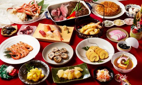 | 料金 | 【1/1(水)~1/3(金)】 ランチ&ディナー同一料金 大人 8,500円 小学生 4,000円 シニア 8,000円 ●未就学のお子様の料金は次の通りとなります。 【4~6歳】2,000円 【0~3歳】無料 ※2025年12月24日(水)~2026年1月3日(土)は特別期間の為、営業時間・料金が異なります。 |
