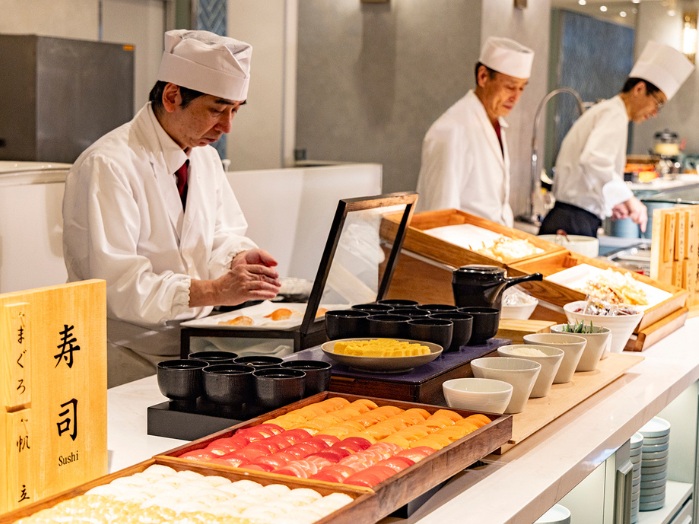 | 主なブッフェメニュー【後半7/4~8/31】 | <ランチブッフェ> 【フェアメニュー】 ※※※【後半】7/4~8/31※※※ 角煮を沈めた魔性のガリバタコーングラタン ガパオの懺悔ニンニク飯 チリコンカン 魚の香草パン粉焼き サーモンとコンテチーズホウレン草のボローバン バジルチキンソテー 理性を奪うガーリックアイオリ仕立ての牛肩肉コンフィーのテリーヌ にんにくが止まらない禁断よだれ鶏 シーフードセビーチェ 本日のサンドイッチ 【その他ブッフェメニュー】 ポークスペアリブ 本日のパスタ 神戸ハイカレー 冷製ホワイトコーンスープ 本日の味噌汁 信州蕎麦 【実演コーナー】 Ozビーフ悪魔のダイスステーキ ベーコンとガーリックペッパーの呪い 日替わり天婦羅4種 ※土日祝5種 握り寿司4種 ※土日祝5種 【キッズメニュー】 唐揚げ チキンライス スクランブルエッグ 【デザート】 最後に油断させる罪深メロン杏仁 罪を冷やす官能シェーブドアイス 甘さでリセットする悦楽フルーツポンチ ショートケーキ チョコレートケーキ キャラメルマンゴー ムースフリュイルージュ 本日のケーキ 本日の焼き菓子 ドーナッツウォール その他 サラダ・フルーツ・パン各種 ※メニューは、食材の入荷状況により一部変更となる場合がございます。 |