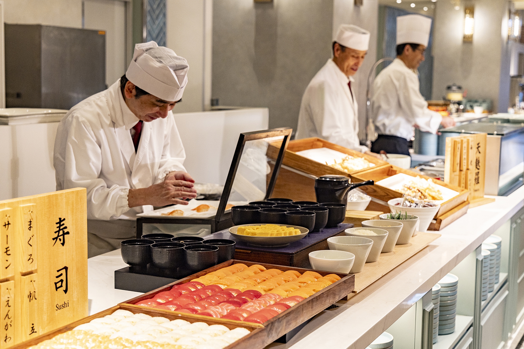 | 主なブッフェメニュー【後半7/4~8/31】 | <ディナーブッフェ> 【土日祝ディナー限定】 本ズワイガニ 【フェアメニュー】 ※※※【後半】7/4~8/31※※※ 角煮を沈めた魔性のガリバタコーングラタン ガパオの懺悔ニンニク飯 チリコンカン 魚の香草パン粉焼き サーモンとコンテチーズホウレン草のボローバン バジルチキンソテー 理性を奪うガーリックアイオリ仕立ての牛肩肉コンフィーのテリーヌ にんにくが止まらない禁断よだれ鶏 シーフードセビーチェ 本日のサンドイッチ 【その他ブッフェメニュー】 ポークスペアリブ 本日のパスタ 神戸ハイカレー 冷製ホワイトコーンスープ 本日の味噌汁 信州蕎麦 【実演コーナー】 Ozビーフ悪魔のダイスステーキ ベーコンとガーリックペッパーの呪い 日替わり天婦羅5種 握り寿司5種 【キッズメニュー】 唐揚げ チキンライス スクランブルエッグ 【デザート】 最後に油断させる罪深メロン杏仁 罪を冷やす官能シェーブドアイス 甘さでリセットする悦楽フルーツポンチ ショートケーキ チョコレートケーキ メロンムース ムースフリュイルージュ 本日のケーキ 本日の焼き菓子 ドーナッツウォール その他 サラダ・フルーツ・パン各種 ※メニューは、食材の入荷状況により一部変更となる場合がございます。 |